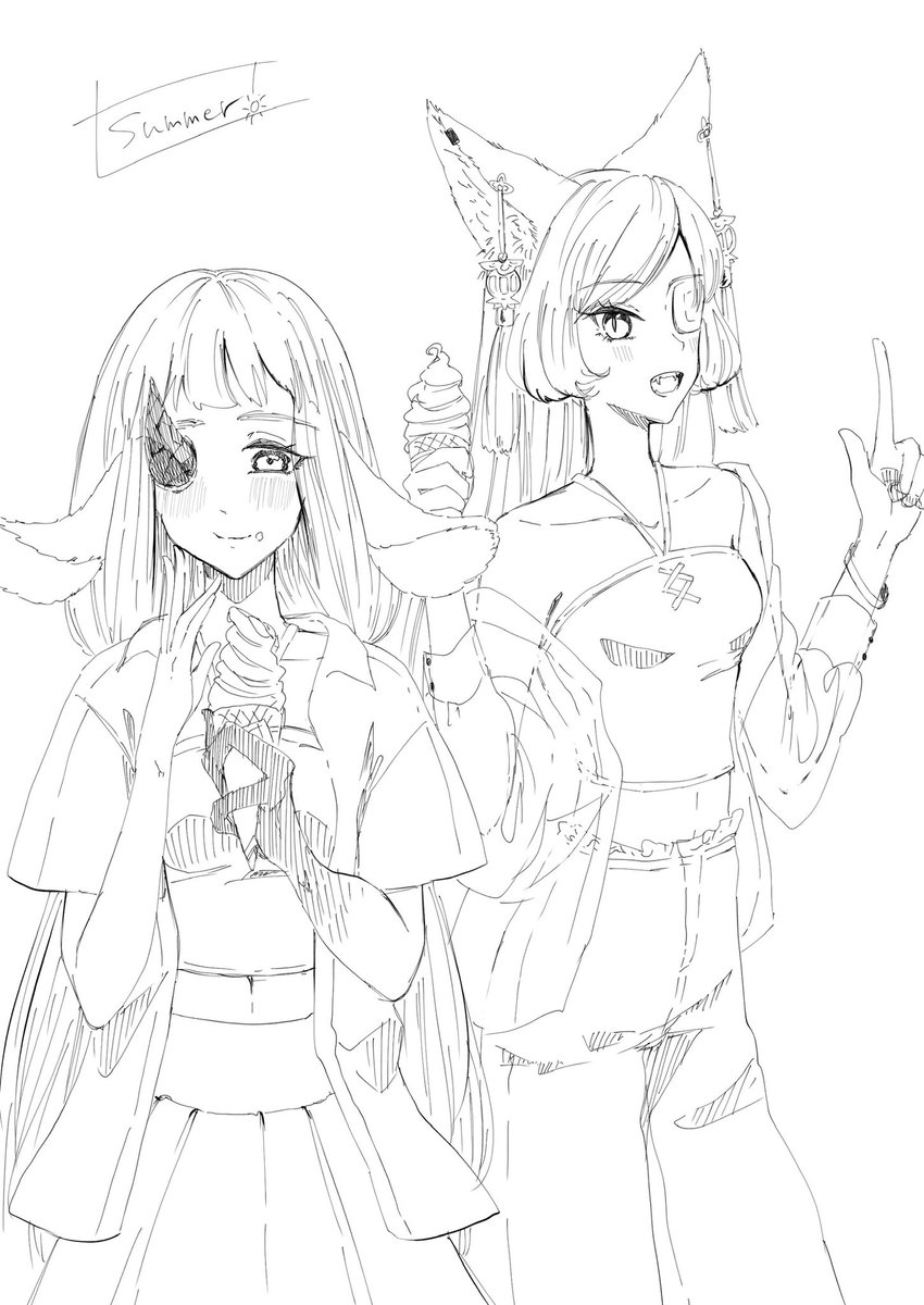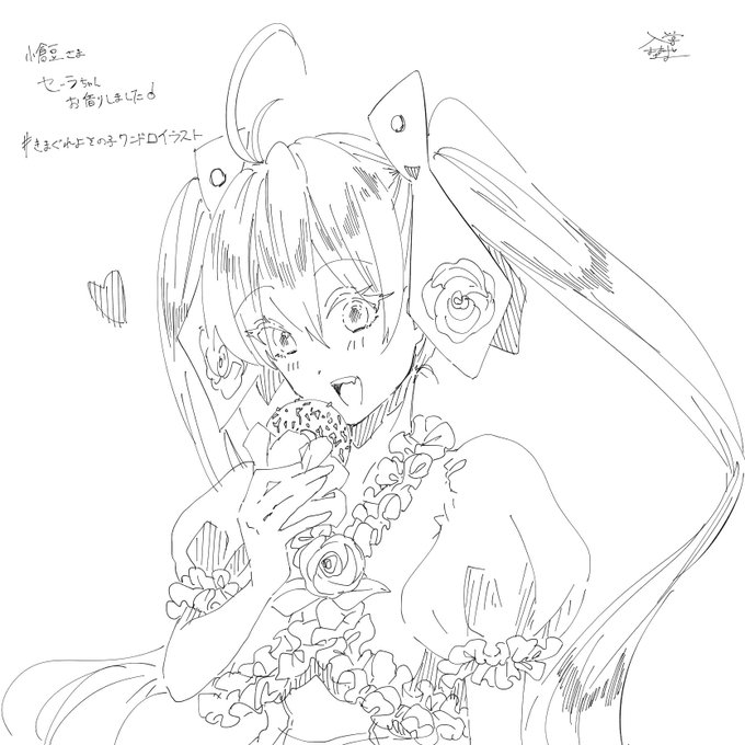 #きまぐれよその子ワンドロイラスト 小倉豆さんのセーラちゃをんをおかりしました! お菓子大好き吸血鬼ちゃん、かわいい〜🥰🥰ドーナツいっぱい食べてね💓 (モノクロでごめんなさい💦) twitter.com/oguramame_s/st…
