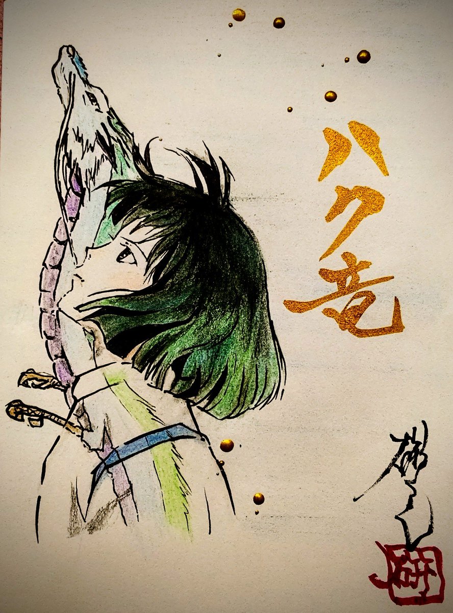 #ジブリ #ハク竜 #墨絵 #ペン画 #色鉛筆 #ジブリパークで待ってる