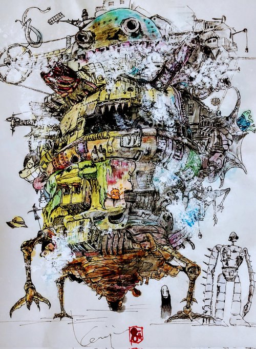 19 130 #ハウルの動く城 #ジブリパーク #墨絵 #ペン画 ジブリのいろんなキャラも描きましたので探して下さい😁 22/10/30 21:22