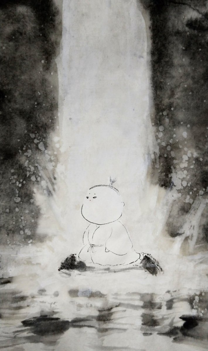 演奏前に滝で身を清める 童子(わらし)。 #雅楽 #絵 #イラスト