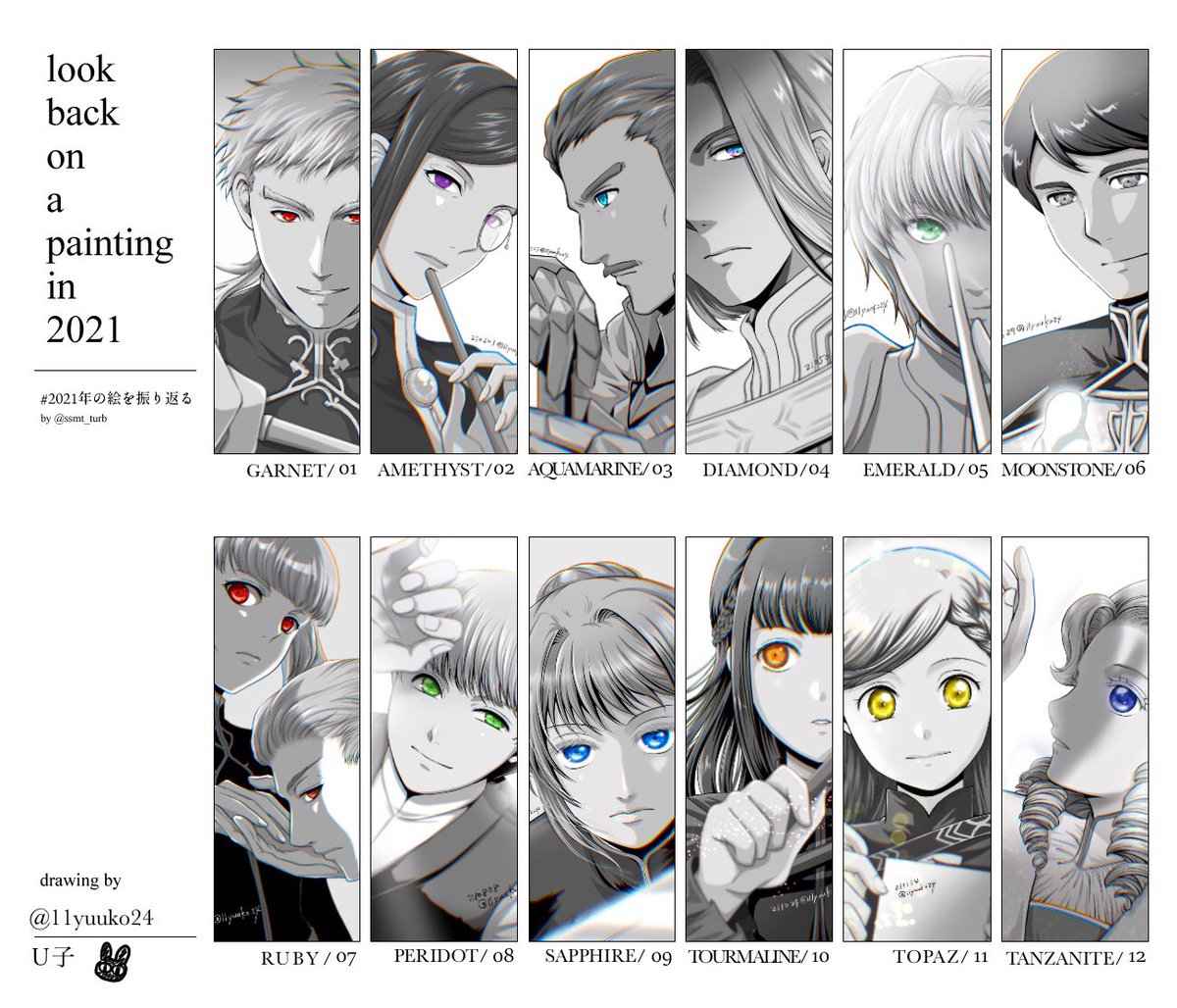#2021年の絵を振り返る テンプレお借りします😆 12ヶ月分並べたかったので達成できて満足です! 毎月のアンケートご協力ありがとうございましたー!! 7月の同票ハンネ様&ベンノさんがどうしようもなくて一番面白かったwww