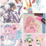 #今月描いた絵を晒そう 7枚描いた!! 計9人と1匹。コピック4枚水彩1枚デジタル2枚。当社比多めですえらいです!