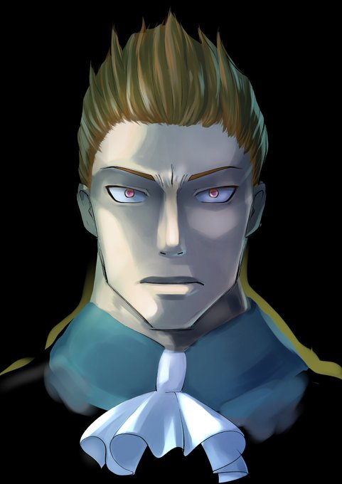 デミトリさん落書き 無計画に書きはじめたはいいものの 私自身が証明用写真を最近撮った事もあり、 あやうく背景を水色にして血色良く塗ろうとするところでした・・・危ない! #格ゲーキャラ描こうぜ