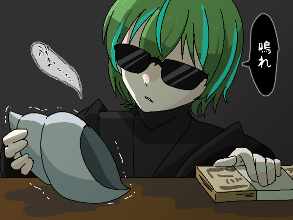 法螺貝を脅して鳴らしているフォロワーの落書きFAです