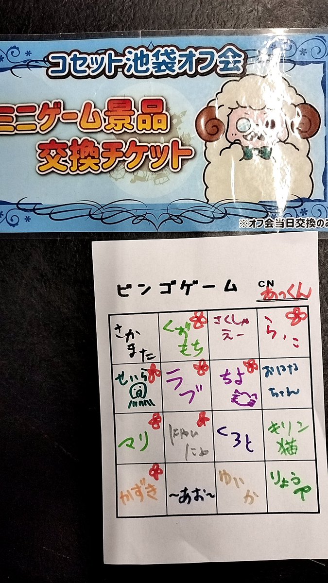 パリピ伊勢海老今回トップバッタービンゴありがとうございましたーー!!お繋がりする機会なかなか取れなかったのでこのツイートを機会にいいねしてくれた人お迎えにいきます!!! 次も行けたらいいな!と思ってます!! #コセット池袋オフ会
