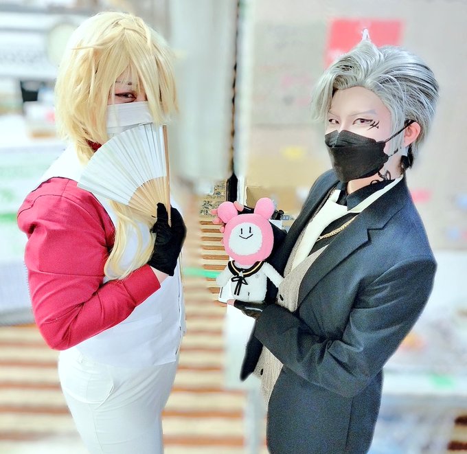 おや、こちらが現世で 人気の”よしだ”というものらしい。御前よ。 うはは。可愛らしいじゃないか。 御前:@kanatao3n ちょも:あっくん 📸:@kairipicus6500 #コセット池袋オフ会
