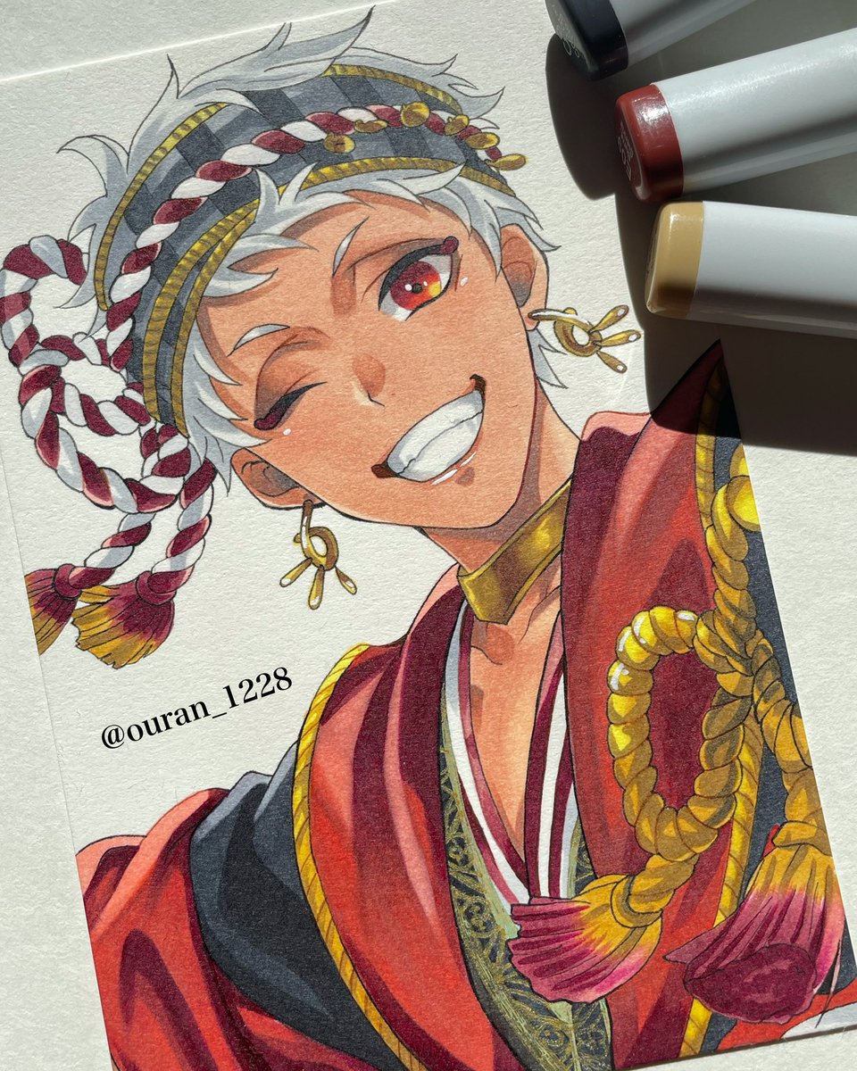 …遅いぞ。 というのは冗談だ。お前が祝いに来るのを待っていた #ツイステ #ツイステッドワンダーランド #ツイステ好きな人と繋がりたい #ツイステ絵描きさんと繋がりたい #ツイステファンアート #マレウス #マレウス・ドラコニア生誕祭2022 #模写