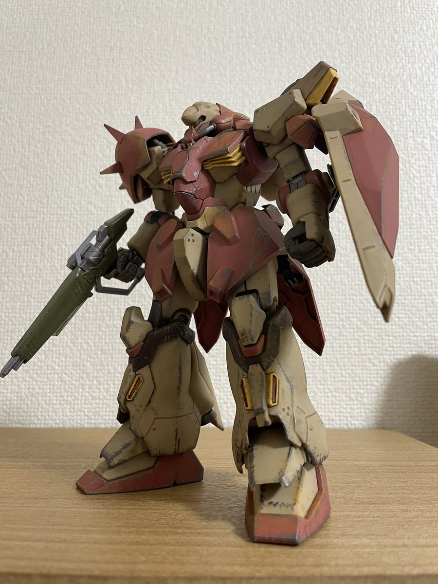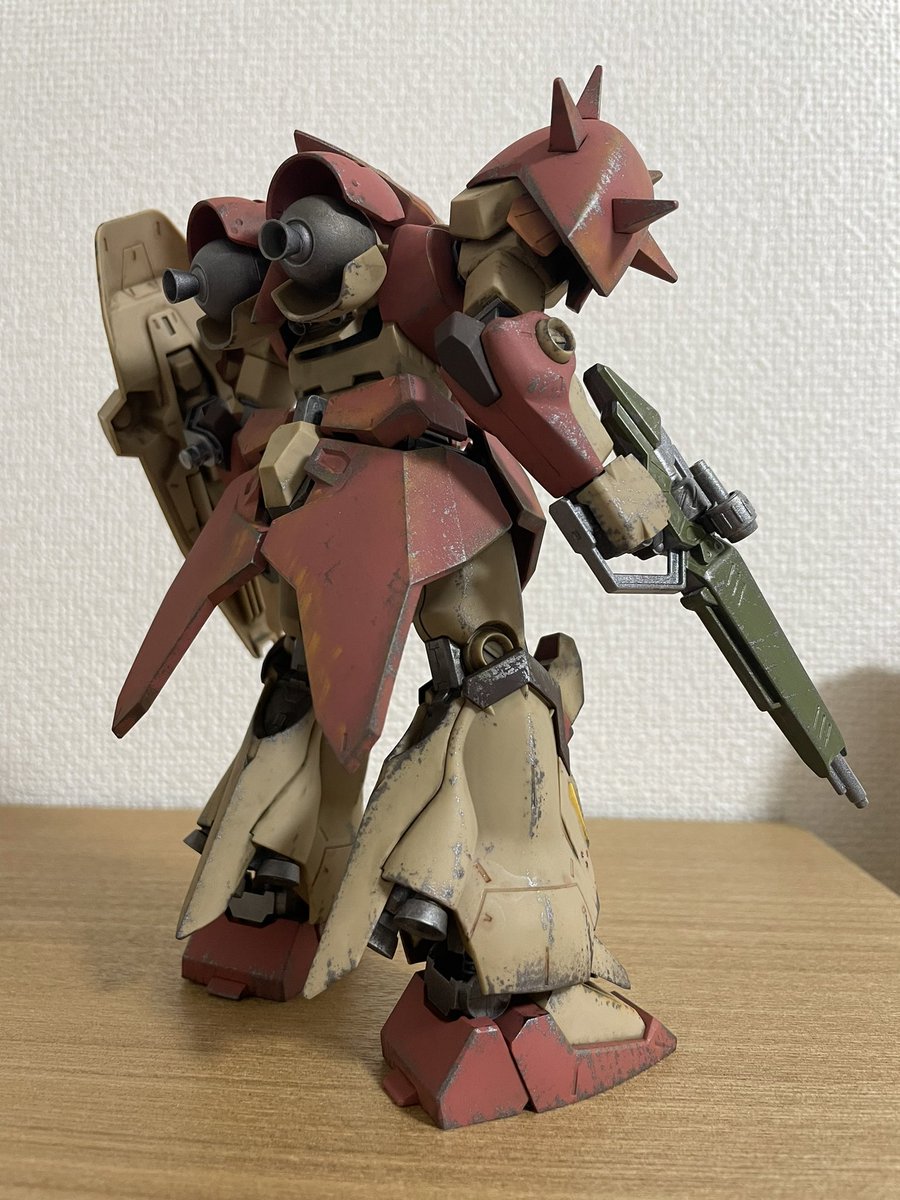 メッサー完成!!はじめて本格なウェザリングに挑戦しましたが、うまくいかないことも多く色々勉強になりました。。チッピングとライフルの筆塗装ははじめてにしてはうまくできたと思ってます♪ #ガンプラの画像貼るとRTされると聞いて #ガンプラ好きと繋がりたい #メッサー #ウェザリング
