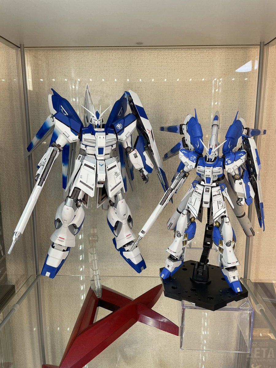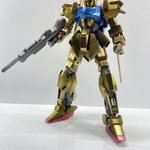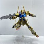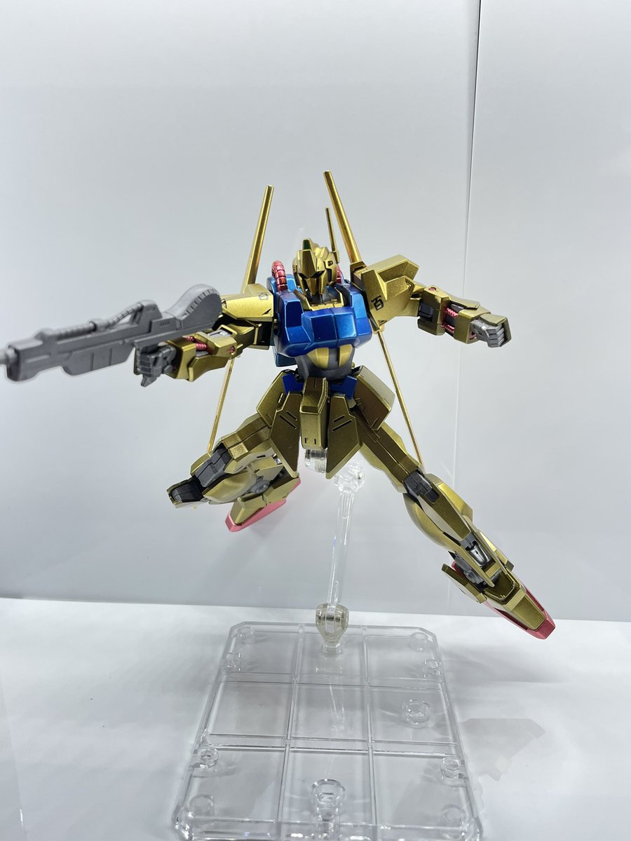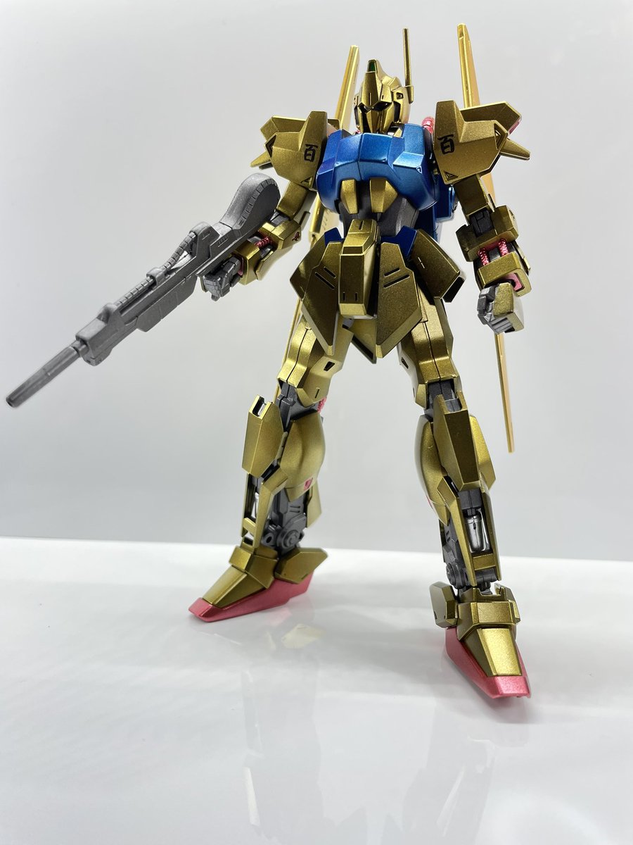 GW(黄金週間)最終日ということで、黄金の百式完成!塗装環境が整ったので、初のオールラッカー。エヴォブラック下地のガイアパールゴールド、クレオスメタリックブルー、クレオスGXメタリックレッド、フレームと武器はエヴォガンメタです! #ガンプラ #ガンプラの画像貼るとRTされると聞いて
