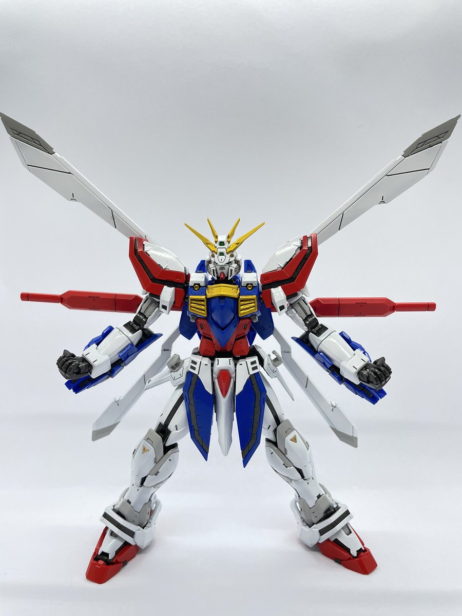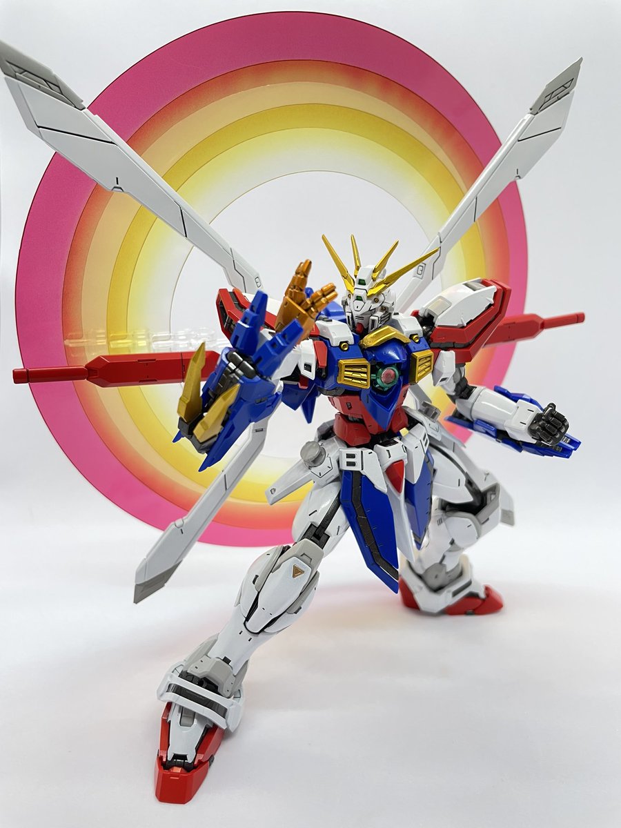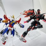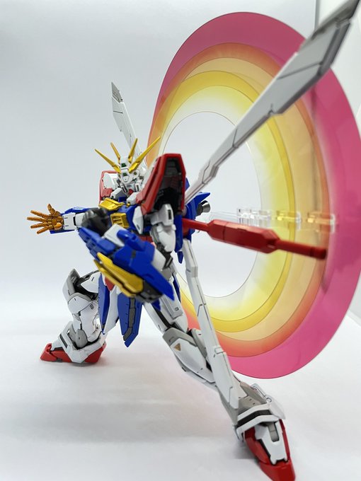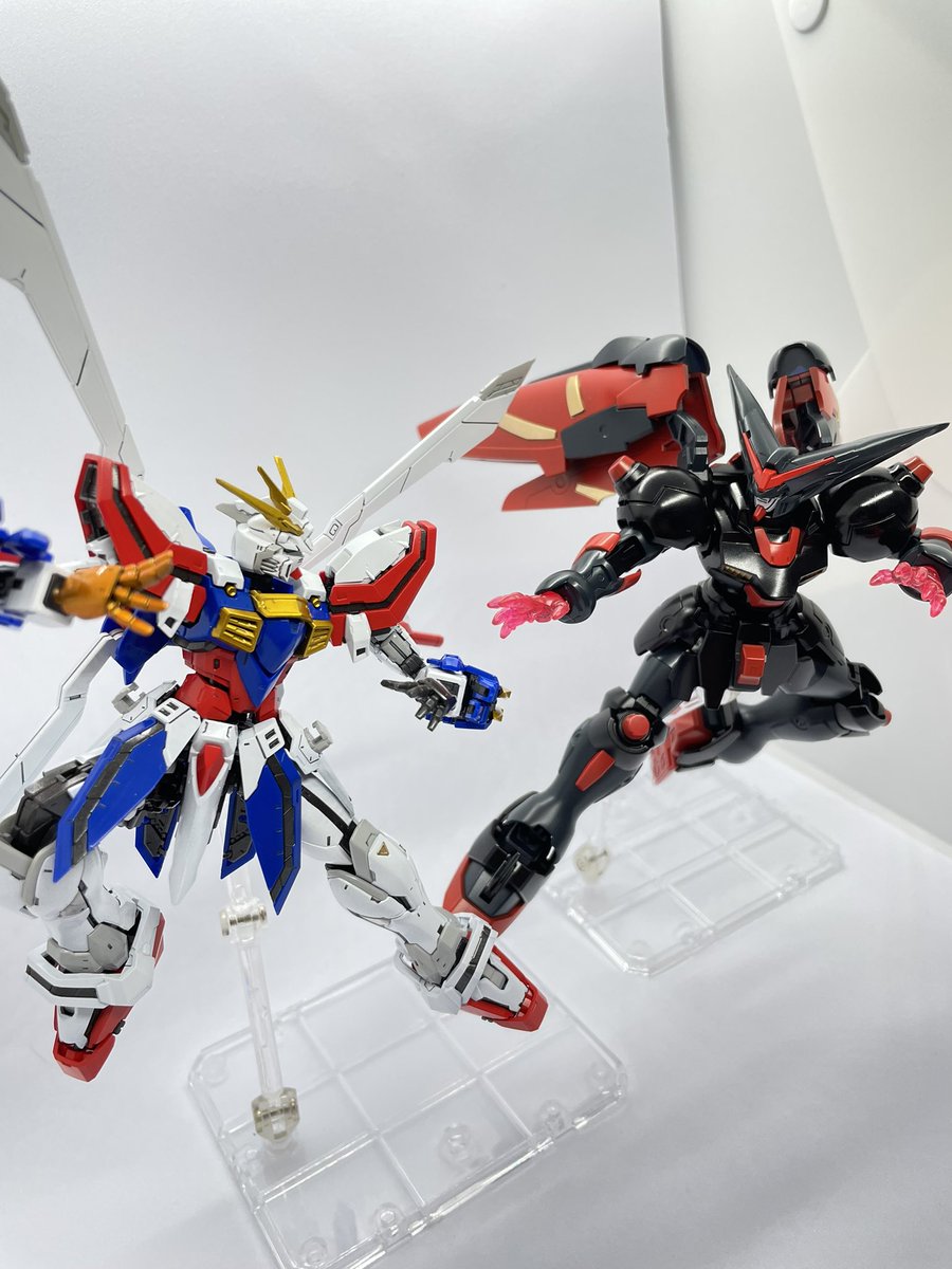RGゴッド完成!!基本は成形色に合わせた塗装ですが、黄色、ゴッドフィンガーはキャンディ塗装でこだわりの色に😁水転写デカール待ち😭(でるか不明ですが。。)直前に作成したマスターと一緒にもパシャリ📸 #ガンプラの画像貼るとRTされると聞いて #ガンプラ好きと繋がりたい #RGゴッドガンダム