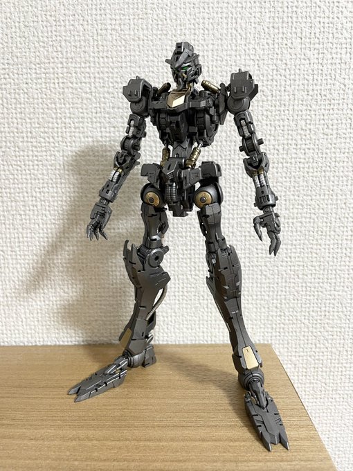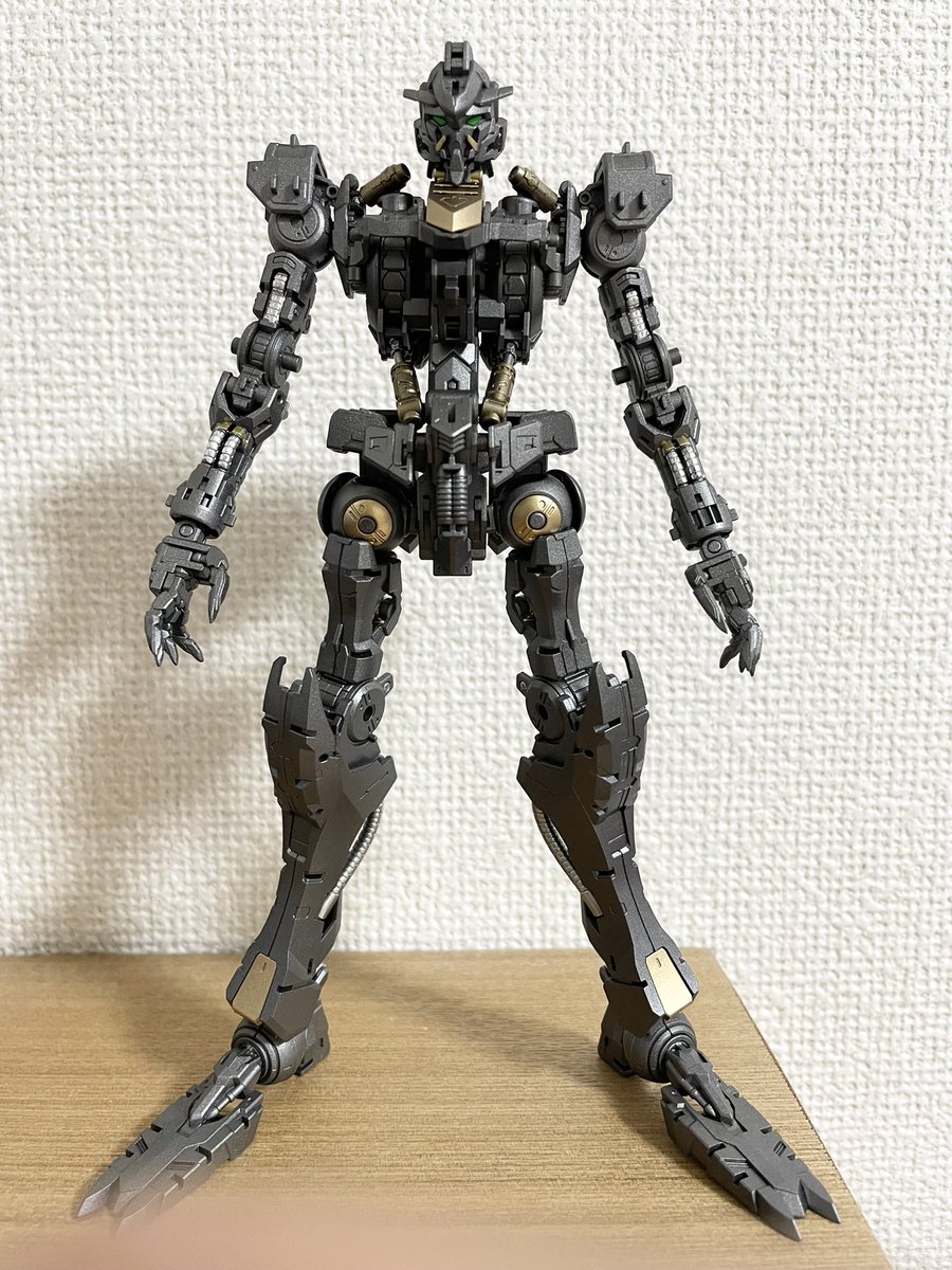 MGバルバトス作成中 EVOガンメタ、クレオスゴールド、スターブライトシルバー、細かいところはガンダムマーカー、ツインアイは蛍光グリーンで。フルメカニクスよりディテールすごい。。4枚目は以前のルプスレクスのフレームです。 #ガンプラの画像を貼るとRTされると聞いて