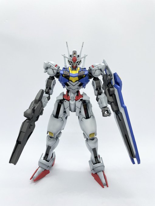 ファラクト完成!!黄色部分は色変しました!黒部分は説明書通りに調色、グレー部分はスターブライトシルバーにブルーメタリックを少々。新たなお気に入りです😆 #ガンダムファラクト #水星の魔女 #ガンプラ #ガンプラの画像貼るとRTされると聞いて