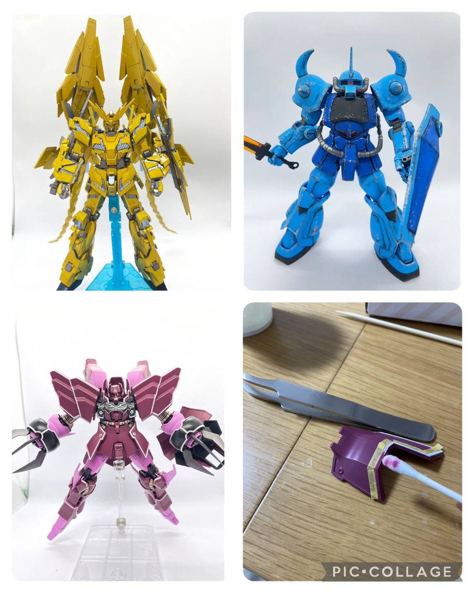 最近アップできていなかったのでまとめて。。w 全部全塗装で仕上げております!ローゼンズールは下地ラッカーの上に水性塗料を塗って、マジックリンで拭き取ってみました! #ガンプラ #ガンプラの画像を貼るとRTされると聞いて
