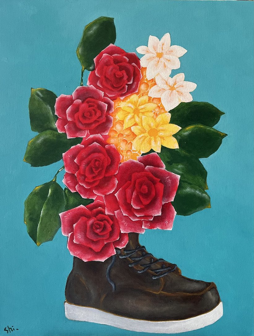 1 21 花をこんな感じで💐 #アナログ絵 #油絵 #art #Oil #oilpainting 22/04/03 18:20