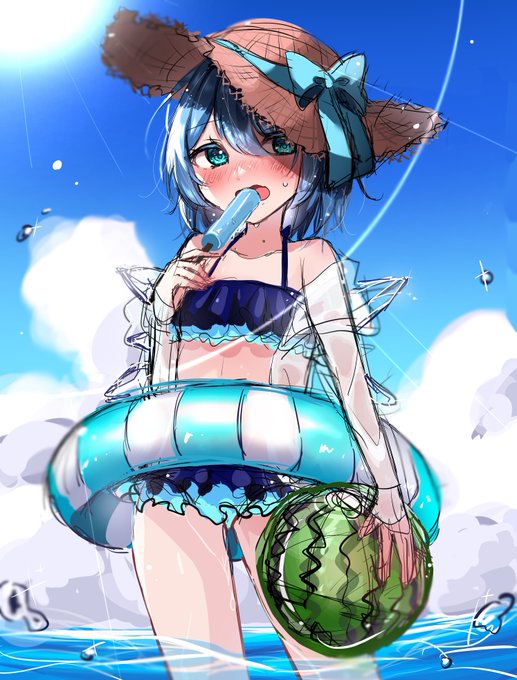 水着チルノちゃんrkgk💙💙🌻🌻 #東方Project #チルノ