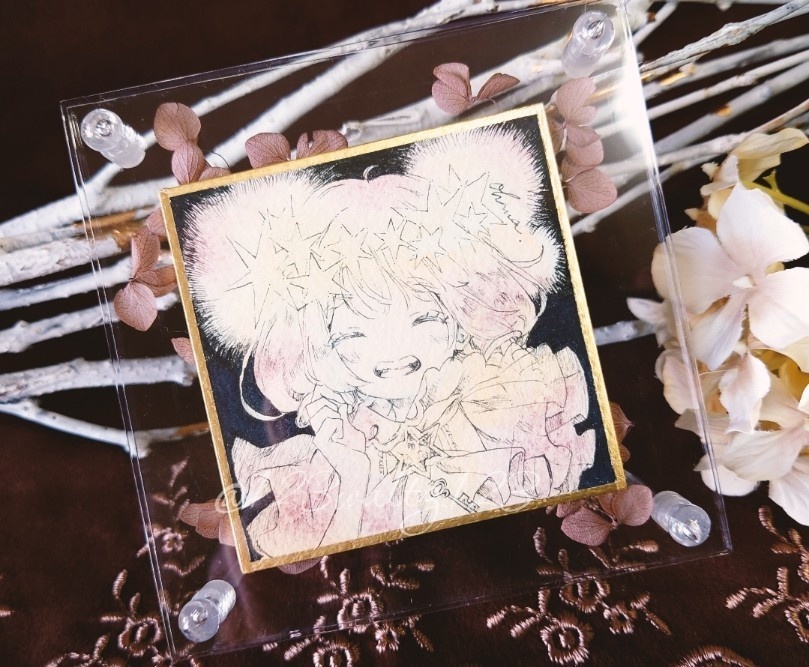 そしてこちらの2枚のミニ原画は 複製原画をお求めの方に セットでおつけするものです✨ (こちらは数日時間かけて 描いているので クオリティがミニ原画の それじゃないです。目とか🤗🌙) #コミティア142 #コミティア142お品書き #COMITIA
