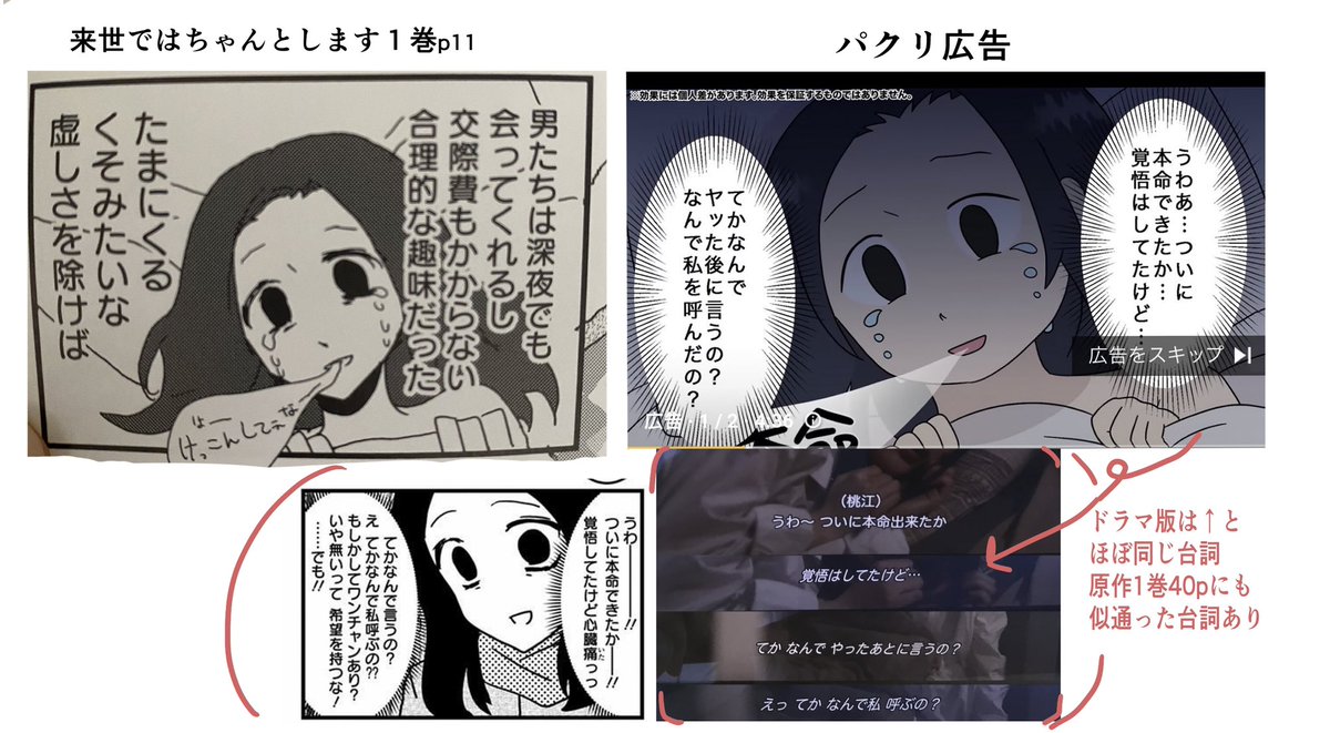 こんな露骨なパクリしたら AIだろうが生きてる人間だろうが1発でアウトに決まってるじゃん🤣🤣🤣❗️❗️(この広告は全て私の漫画の内容そのまま使った)。 絵柄だけの話とここまで露骨なパクリを同一視されてる!?!? twitter.com/okayuaa/status…