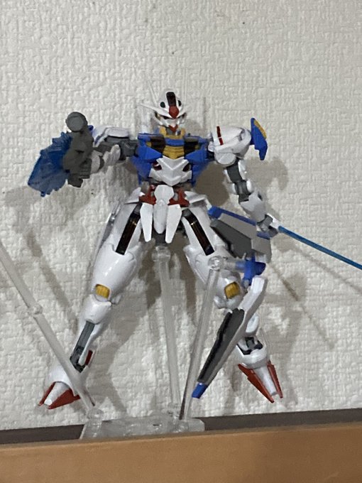 #水星の魔女 #ガンプラの画像を貼るとRTされると聞いて #ガンプラ好きと繋がりたい 初めて塗装したエアリアル胸の下の塗装白になったけどガンプラは、自由だ最終回キャリバーン虹に光ってすごかったね。