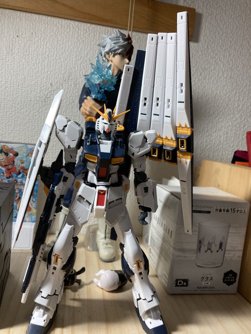 #ガンプラの画像貼るとRTされると聞いて #一日でフォロワー何人増えるかチャレンジ クシャトリヤ無塗装でシールも貼って無いデカ過ぎてベースジャバー無いと地震来た時に倒れてファンネル散らばりそう