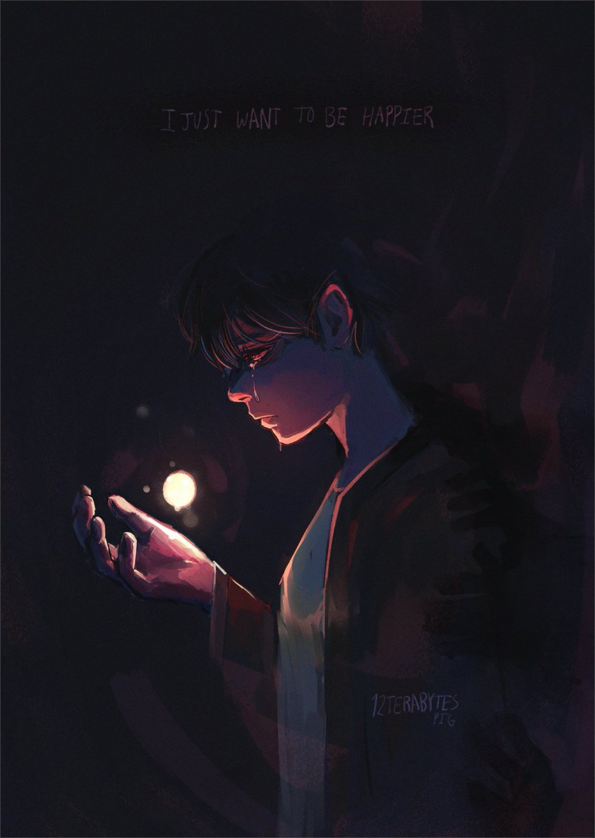 Blue & Grey: I just wanna be happier #BTS_BE #LifeGoesOnWithBTS #LifeGoesOn #btsfanart #Taehyung #v #BETODAY