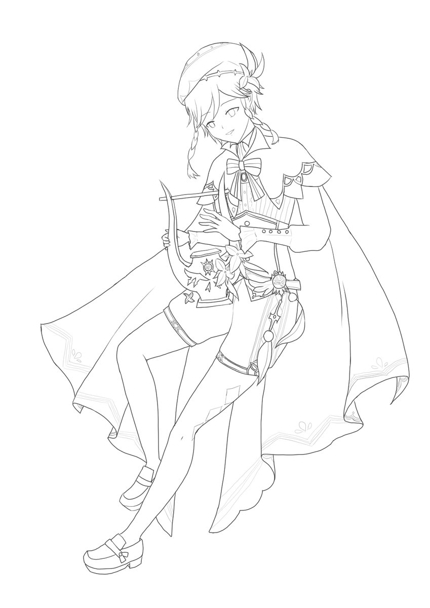 服の装飾多すぎて線画で力尽きたウェンティ #原神イラスト #GenshinImpact