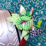 今酒ハクノさん、ライターデビューおめでとうございます🎉ムービーナーズの記事楽しみにしてます🥳 手芸の人なので、ハクノさんをイメージしたお花をつまみ細工で作りました。髪にも挿せます #画伯ノ