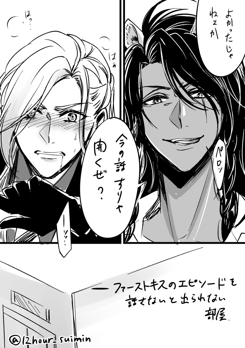 #恋毒 #レオヴィル深夜のワンドロ・ワンライショー #レオヴィル深夜の脱出ゲーム 久々に参加!描きたいところだけ描いた。コラボお題「ファーストキスの話をしないと出られない部屋」お借りしました。