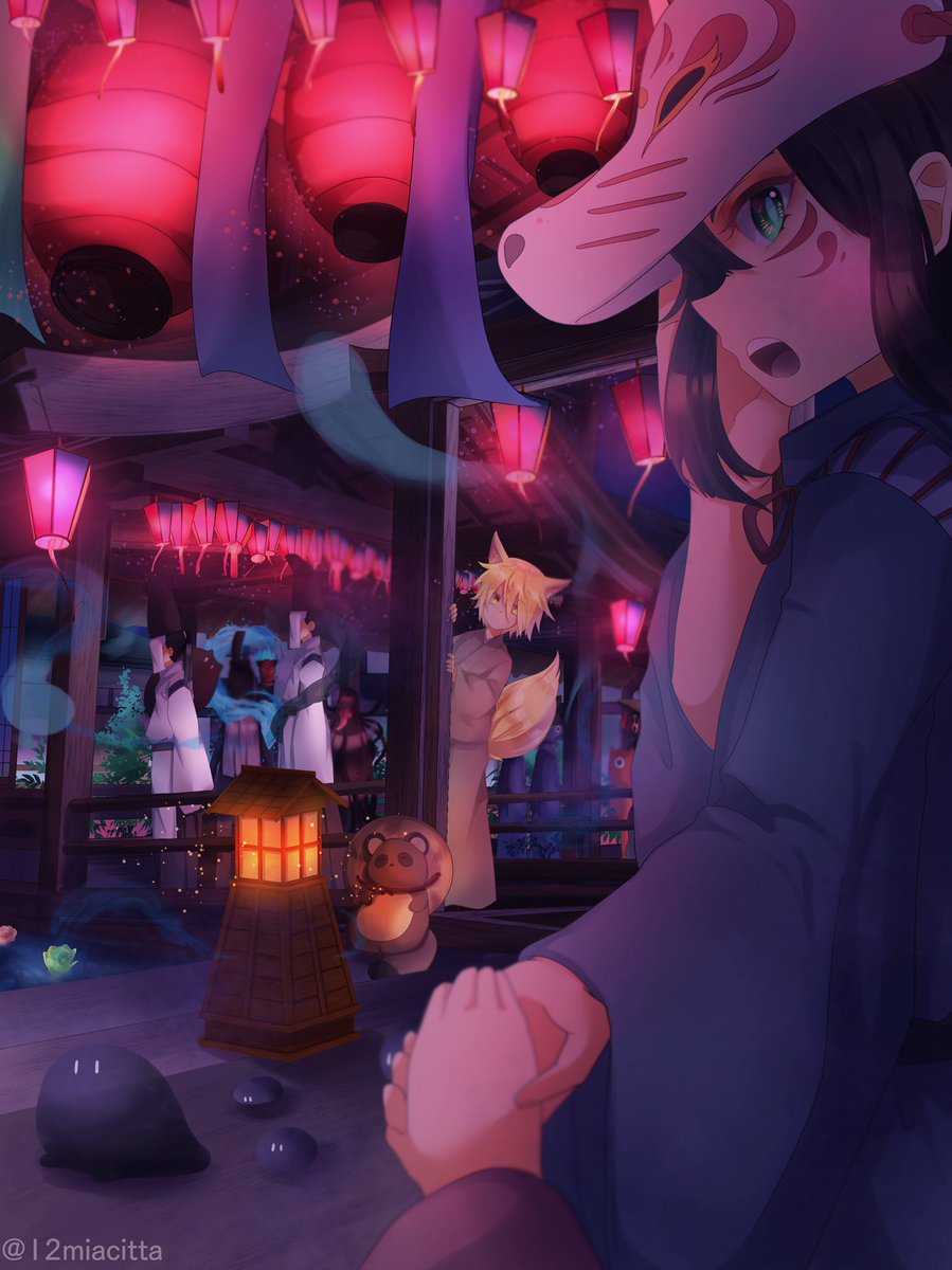 #オリジナル #イラスト #創作 久しぶりに背景ありのイラスト🦊🏮