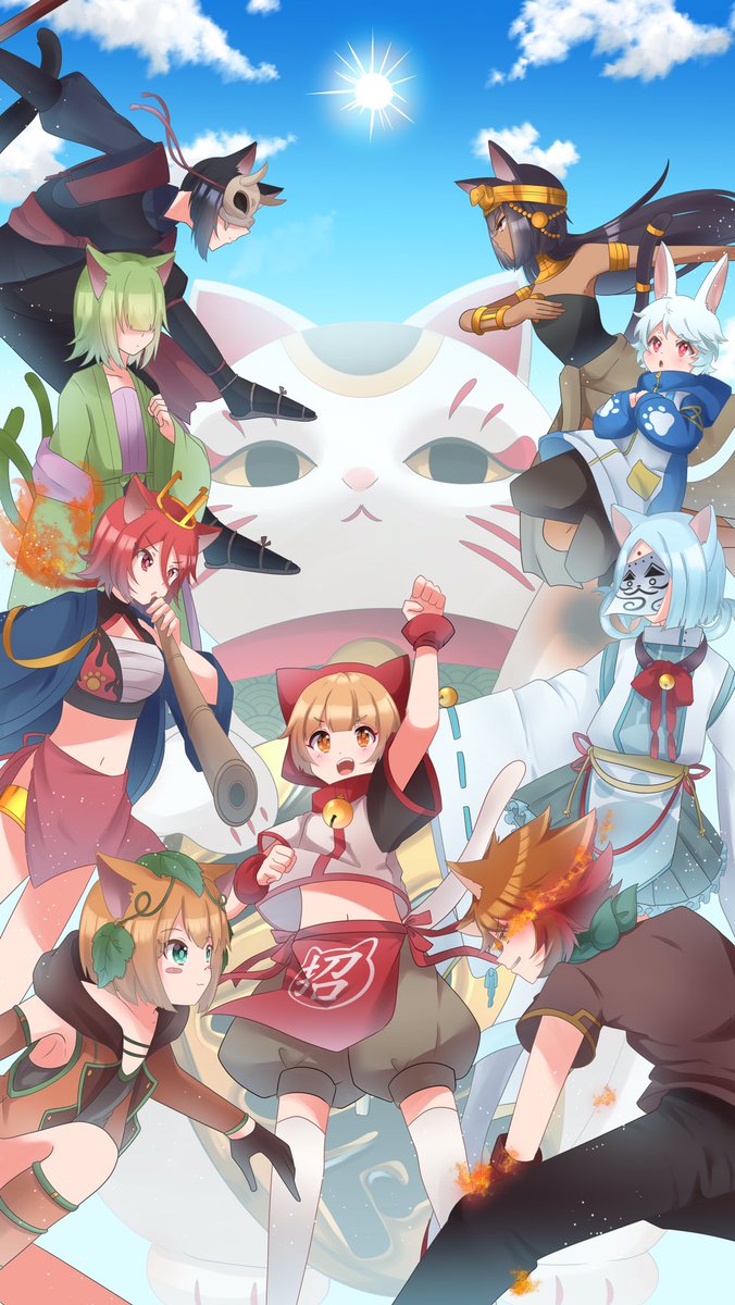 #オリジナル #イラスト #創作 ポートフォリオ用創作🐱⚔️ ゲームのスタート画面っぽいやつ