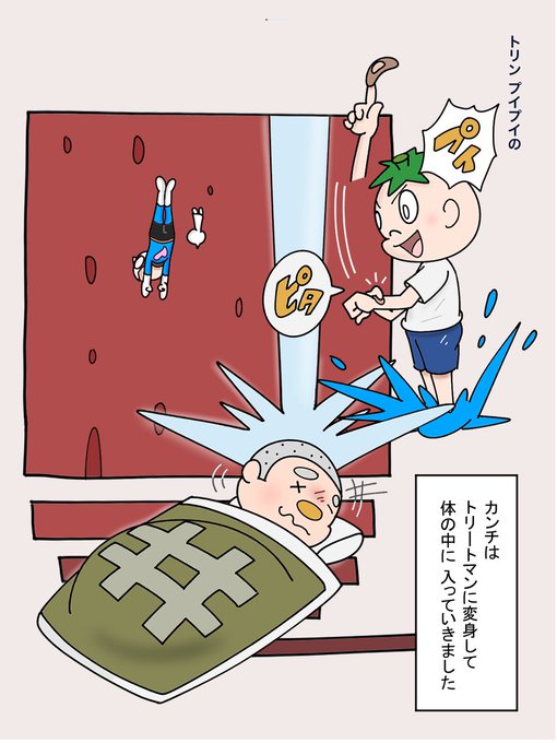 小児科で泣いている子供がいたなぁ・・・ 「トリンぷいぷいの プイ」 今、トリートマンが行くから待っていて! #企画 #イラスト #漫画 #絵本 #トリートマン