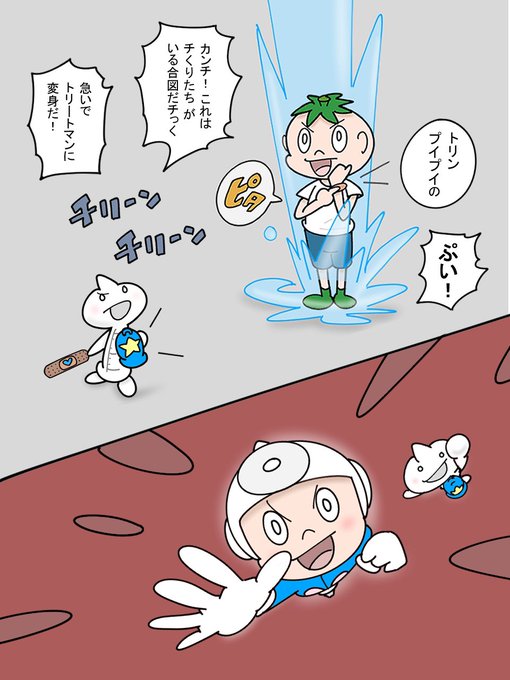 6 99 小児科で泣いている子供がいたなぁ・・・ 「トリンぷいぷいの プイ」 今、トリートマンが行くから待っていて! #企画 #イラスト #漫画 #絵本 #トリートマン 23/03/16 12:22