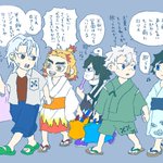 ⑥おまつり🍃🌊 今回から3️⃣枚 こういうの描いてると途中で叫びだしたくなる☺️帯塗り忘れてることに気がついたけど気が付かなかったフリして🆙するね😉💚💙