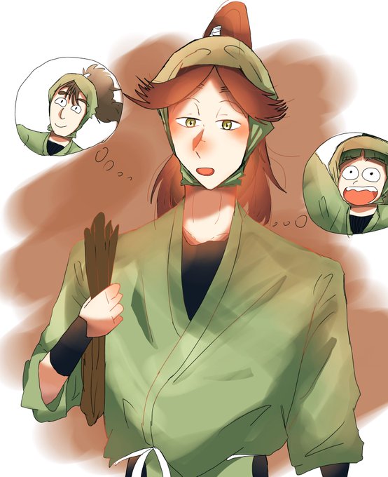 富『探さないとな…ボー』(ボーっとしてしまう作ちゃん)もう頭が回らず迷子組の顔がぼんやりとしか思いつかない様子。 #nin_draw