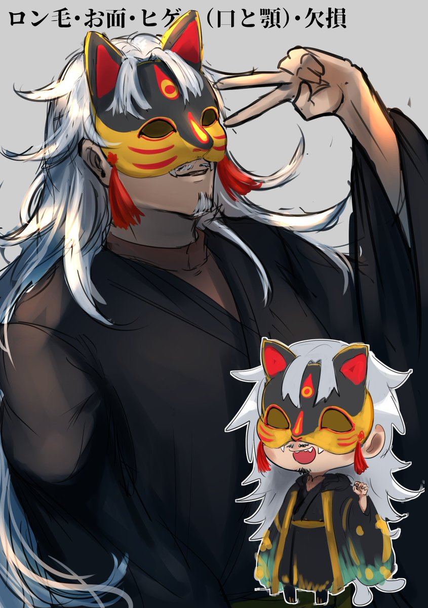 息抜きでおじさん描きました!結構デザイン気に入ってるのでブラッシュアップして和創作に組み込まれそうです! イメージありがとうございました! twitter.com/13hakuu/status…