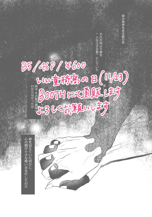17 121 そういえば、当時童猗窩アンソロのサンプル上げる余裕が無くてここまで来てしまったんですが… こんな感じの救いのない現パロ童猗窩で参加させていただいてます! 23/02/27 16:19