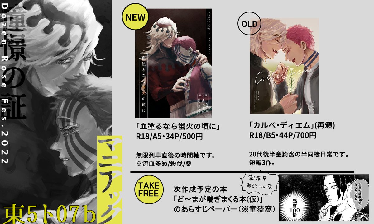 12/11 童猗窩プチオンリー「憧憬の証」のお品書きです よろしくお願いします~! 前日までにツリーでトリオキニ設置します(フォロワー限定)