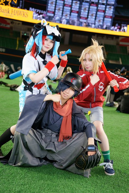 「ちゃんマス〜!あたしちゃんたちの力、そこで座ってまあ見てなって!」 「よお、どうせなら父上のとこといっちょやろうぜ?」 「任せちょけ、ワシが土佐の星じゃ…!」 Photo:しょうさん(@syou_syumiaka) なぎこさん:京さん(@kyo_1029_) モーさん:りんさん(@mitu_kuri_) #アコスタ福岡PayPayドーム