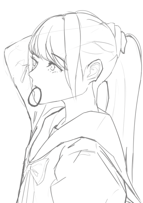 傘をさす女の子の下書きですー #イラスト #イラスト練習中