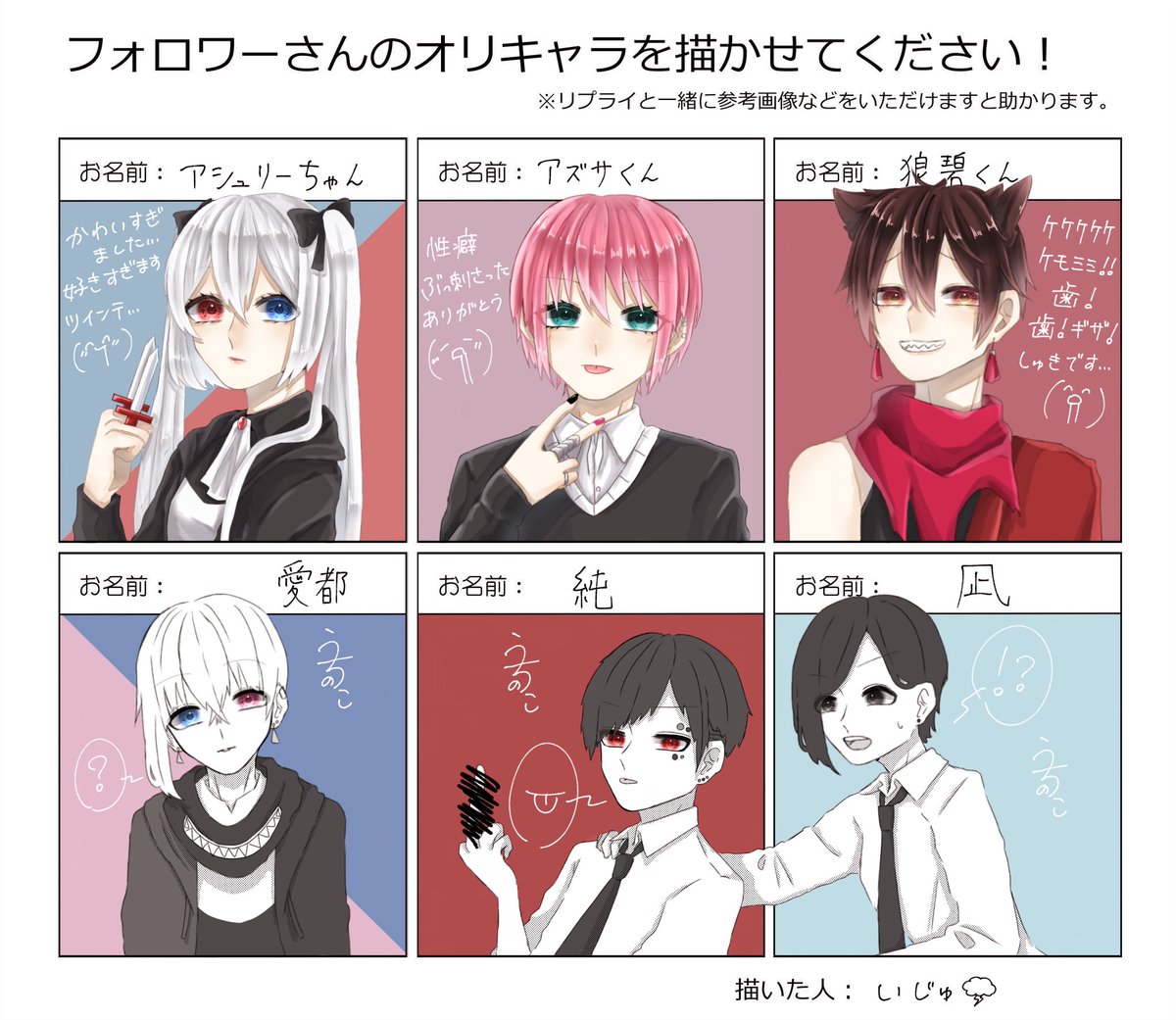#フォロワーさんのオリキャラを描かせてください 3名様ありがとうございました!! 描いてて楽しすぎた、、🤦♀️💕💕 うちの子混じってるのはお気になさらず(◜ᴗ◝ )