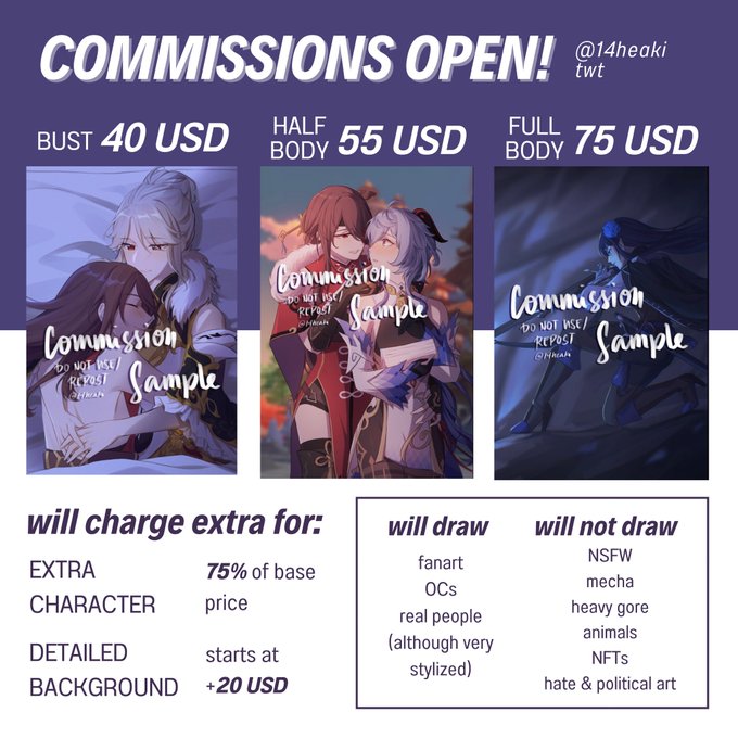 (rts greatly appreciated!) hi! i’m opening commissions again bc i need a laptop for school and my current one died on me ahaha </3 i’ll be taking 5 slots this time! ToS & samples: 14heaki.carrd.co dm me if you are interested! thank you🫶 #commissionsopen #commissions