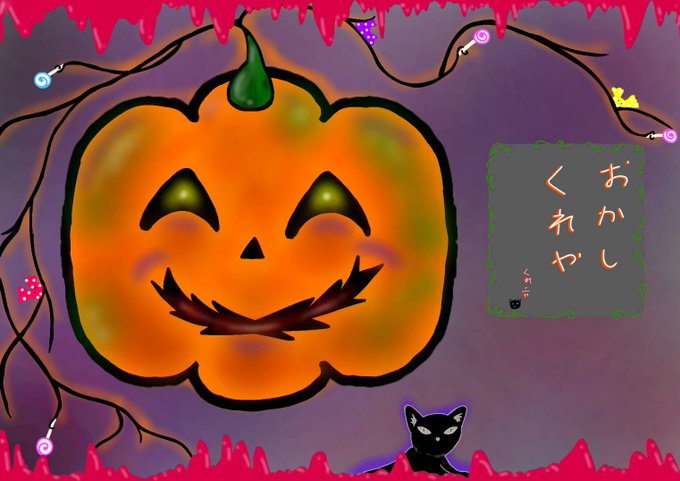 今回のイラストの題名は「👻🎃HappyHalloween🎃👻」です!お菓子大好きカボチャ🎃のお化けがやってきた〜(*`艸´)ニシシ 怖い感じか個人的に難しいかったです。でも結果的に面白くなってしまった(^ー^* )フフ #イラスト練習 #ハロウィンイラスト #デジタルイラスト