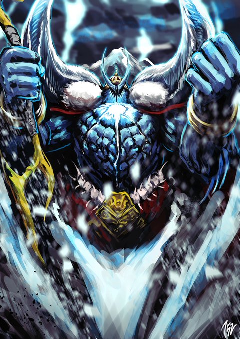 1568 8602 #自分の代表作だと思う絵を一枚だけ選んでみよう この前描いたティアマトが一番反響大きかったですね。上げたときは真ん中だけトリミングしてたんですけど、全部描いてたんす。 23/06/05 20:53