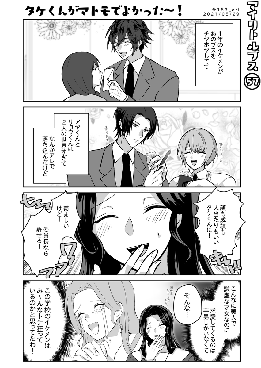 あまり可愛くない女の子が厄介すぎるイケメンに毎日告白されて毎日が大変な漫画 21 1話からまとめ読み用モーメント→twitter.com/i/events/12866…… #漫画が読めるハッシュタグ #創作漫画 #創作男女 #4コマ漫画