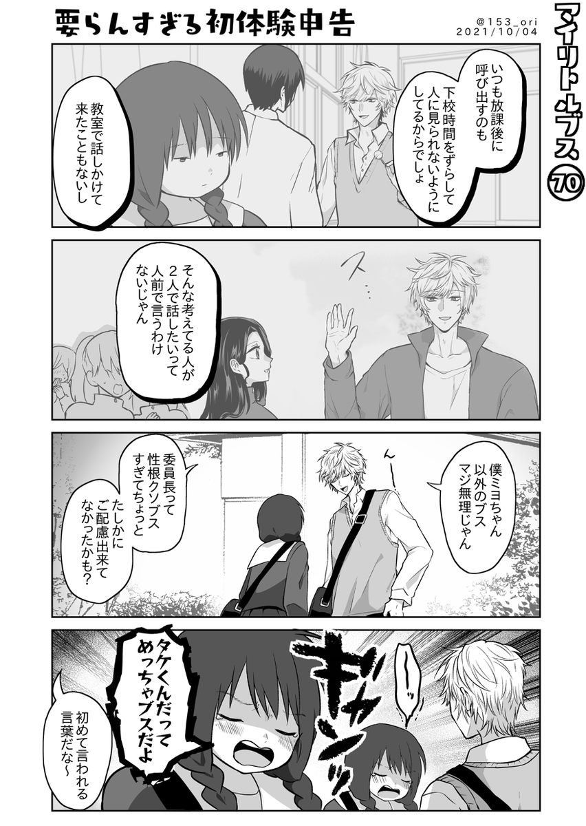 あまり可愛くない女の子が厄介すぎるイケメンに毎日告白されて毎日が大変な漫画 35 1話からまとめ読み用 pixiv|シリーズ→pixiv.net/artworks/86116… Twitter|モーメント→twitter.com/i/events/12866… #漫画が読めるハッシュタグ #創作漫画 #創作男女