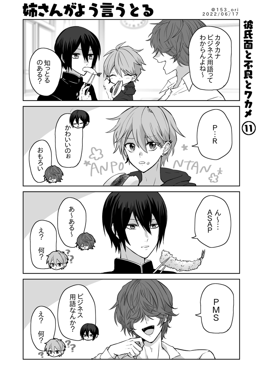 【彼氏面と不良とワカメ(3) 】 方言男子中学生の日常漫画です〜! ▼まとめ読み用モーメント twitter.com/i/moments/1326… #漫画が読めるハッシュタグ #創作漫画 #4コマ漫画