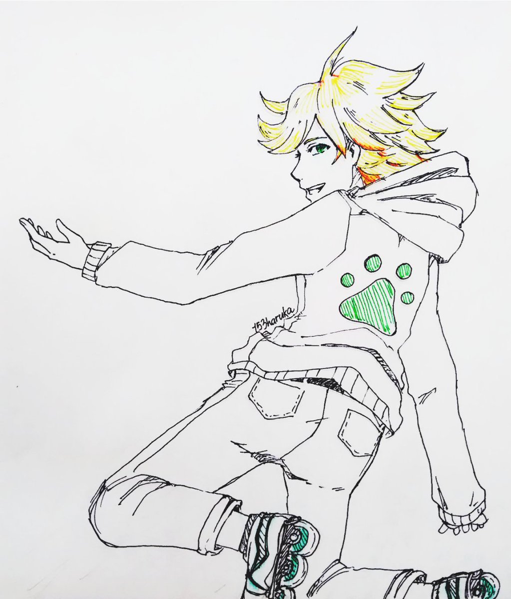 #Inktober2020 Day 5: Blade Featuring: #AdrienAgreste from #MiraculousLadybug --- Air Gear AU j/k hahaha. Nah, I wanted to draw this precious boy having fun with his pals and well, tried to draw doing an action jump with rollerblades while failing miserably.