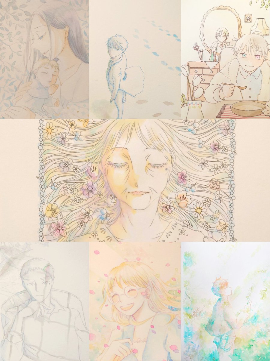 #水彩行進曲 #今月描いた絵を晒そう 3月はなつびさんとのはらさんのタグ企画に参加させて頂きました🍒 3•4枚目は自創作漫画から♢ 合間に漫画の内容がわかるダイジェスト作ったので、 良ければ一緒に見てください(*´ω`*) 主催のお二人ありがとうございました♥ twitter.com/155cm49kgTypeA…