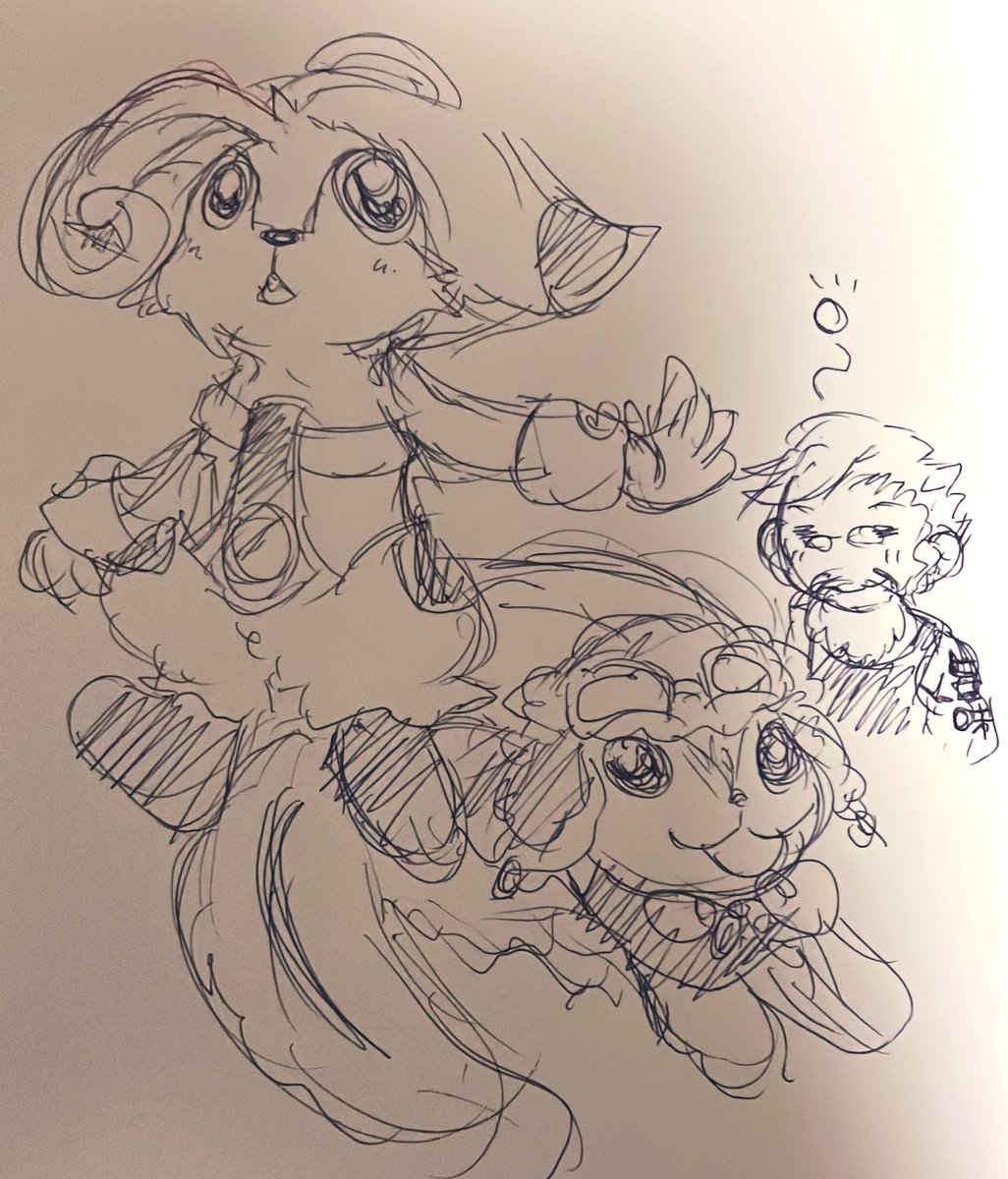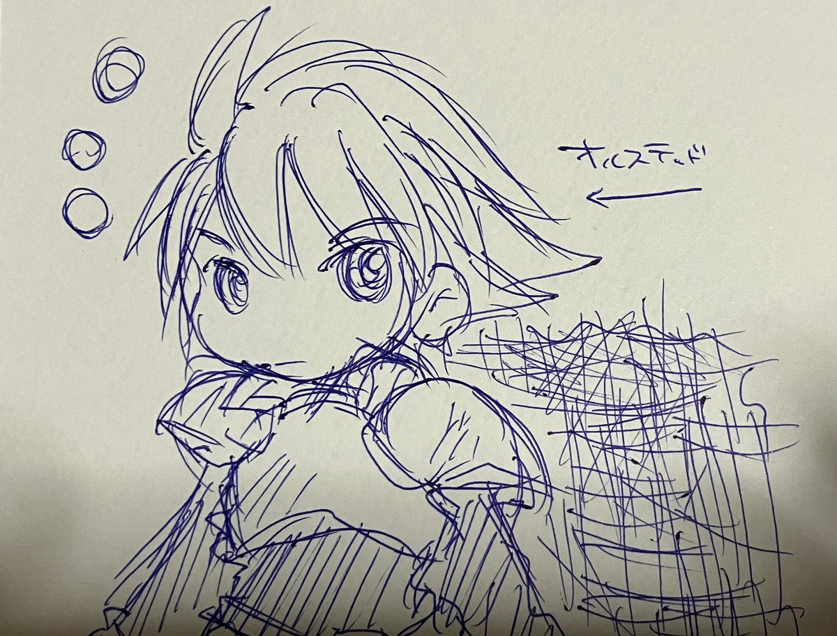 配布のアーミック持ってないからほんま…アーミックの新スタイル希望… ボールペン落書き。 動物(と、旨味おじさん)がうまく描けるようになりたいです… #決戦ロマサガRS