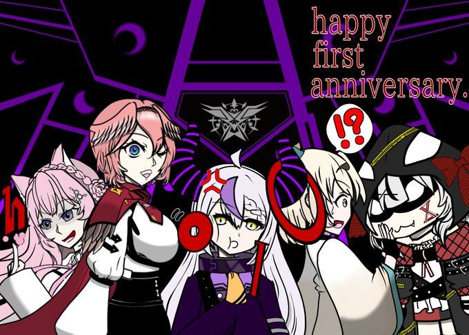 心より 「Happy first anniversary♪」。 #SSholoX1周年 #ラプラスダークネス #鷹嶺ルイ #沙花叉クロヱ #博衣こより #風真いろは #laplus_artdesu #Luillust #さかまた飼育日記 #こよりすけっち #いろはにも絵を #ホロライブ #Hololive