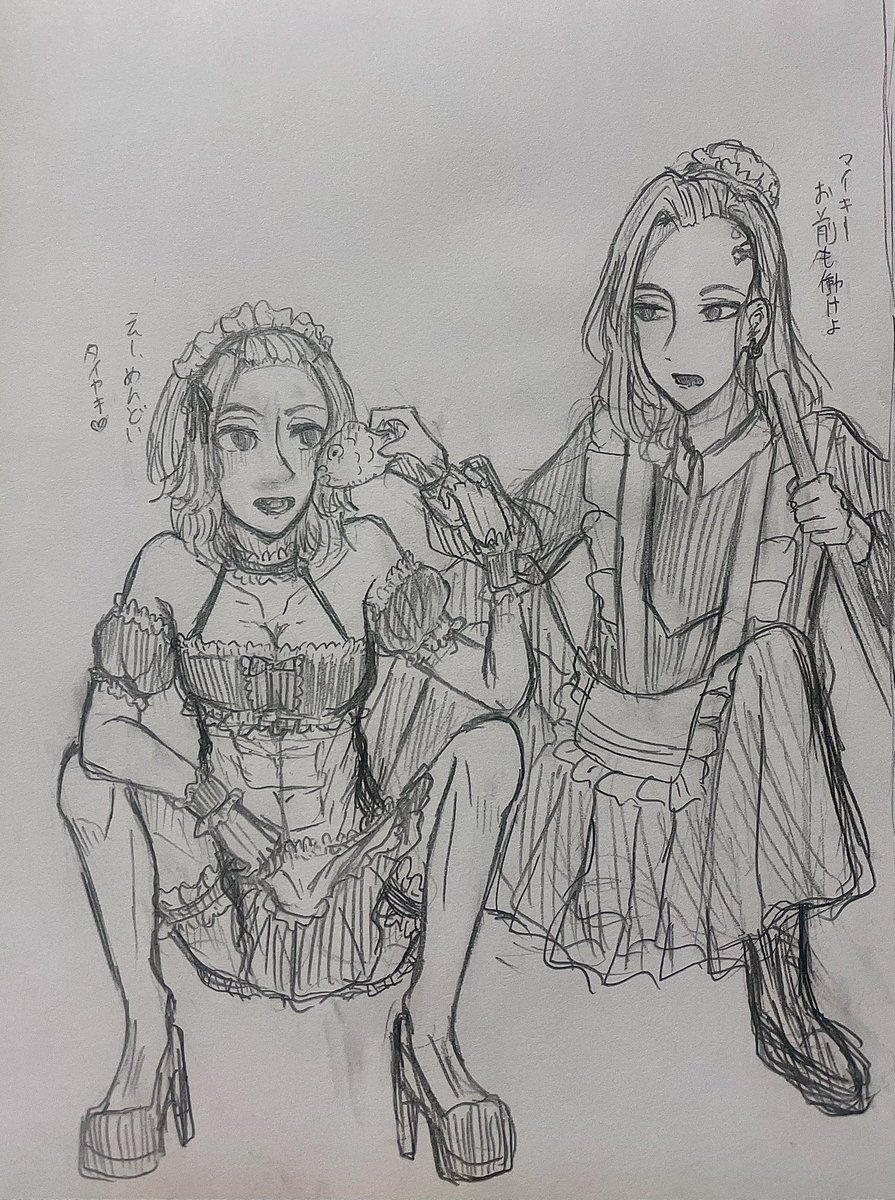 0 4 色々なメイド服をドラマイ、ばじふゆに着せて働かせてみました。 #東京リベンジャーズ #イラスト #イラスト好きな人と繋がりたい 22/12/26 19:55